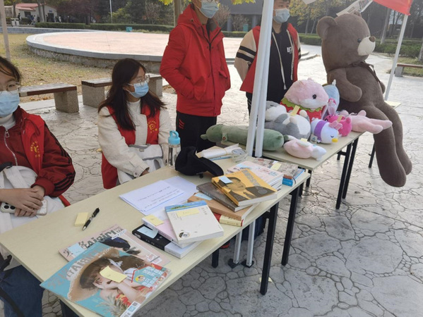本次活动分为三部分:爱心捐赠、爱心义卖、活动抽奖。在活动中,志愿者们按时到达摊位进行志愿服务活动。为感兴趣来到摊位前的同学们仔细地讲述活动的内容以及目的并宣传了爱心捐赠以及爱心义卖的重要意义。