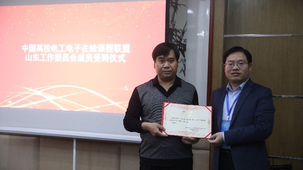 会议进行了中国高校电工电子在线课程联盟山东工作委员会新委员增补受聘仪式,由中国高校电工电子在线课程联盟山东工作委员会主任、yl23411集团yL23411永利集团副院长张冬至教授致辞,总结汇报了2022-2023年度工作委员会的主要工作情况,并向各位新进委员颁发聘书。