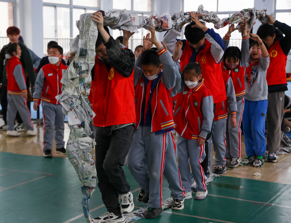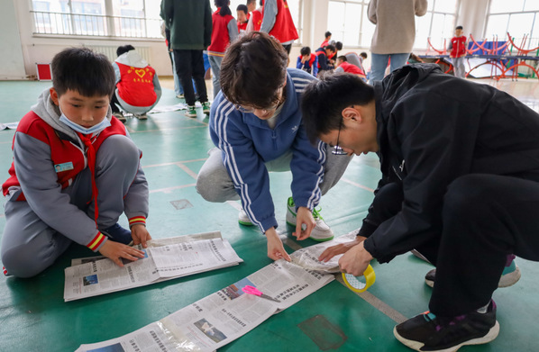报纸车轮游戏 王意洋摄