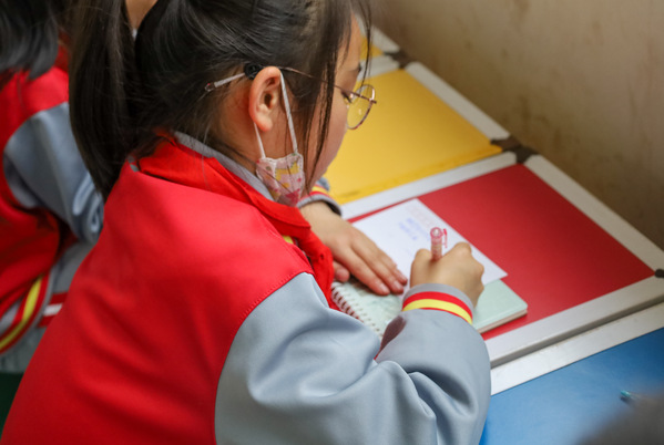 小朋友在明信片上写下自己的心愿 高笑言摄