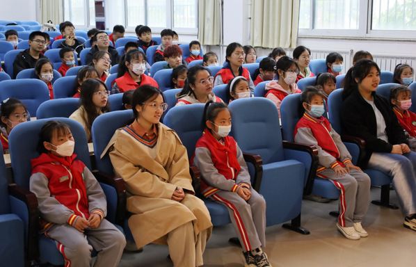 在北庄小学多功能教室,控制学院许硕向小学生们讲述五四运动的起源、意义及五四精神的内涵,大家认真倾听,体会革命先烈为了民族独立、国家富强的前仆后继、英勇奋斗。宣讲后的知识竞答环节,由大小朋友搭档参与,一人抢题、一人作答,火热的氛围让大家迅速熟识,在抢答过程中,五四精神的内容、内涵也真正入脑、入心。