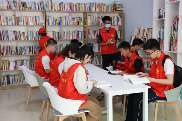 图四 志愿者们在社区读书室学习用电安全有关知识(聂恩平摄)