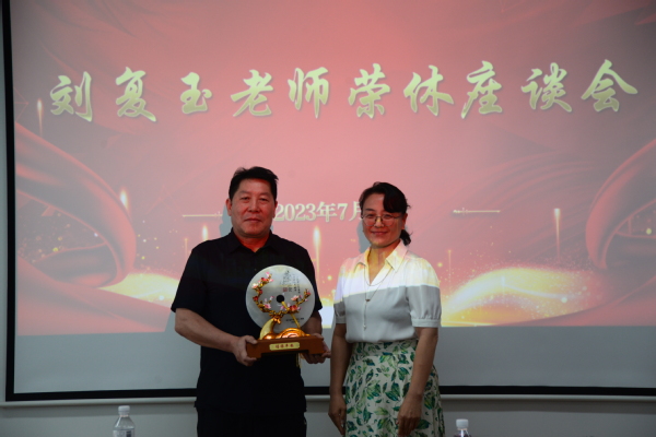 仪式现场的气氛热烈而融洽。仪式伊始,播放了刘复玉老师从1987年入职以来在石油大学的老照片。这些点点滴滴的珍贵回忆体现了刘复玉老师作为一名人民教师在教学和科研岗位上勤勤恳恳,任劳任怨的精神品质。刘复玉老师的学生们也主动录制视频为刘老师荣休送上祝福。在这温馨动人的氛围中,于连栋院长介绍了刘复玉老师的履历。随后,学校工会胡煜老师代表学校工会感谢刘老师在学校发展、人才培养方面作出的重要贡献,并向刘老师赠送了荣休纪念品和纪念牌。