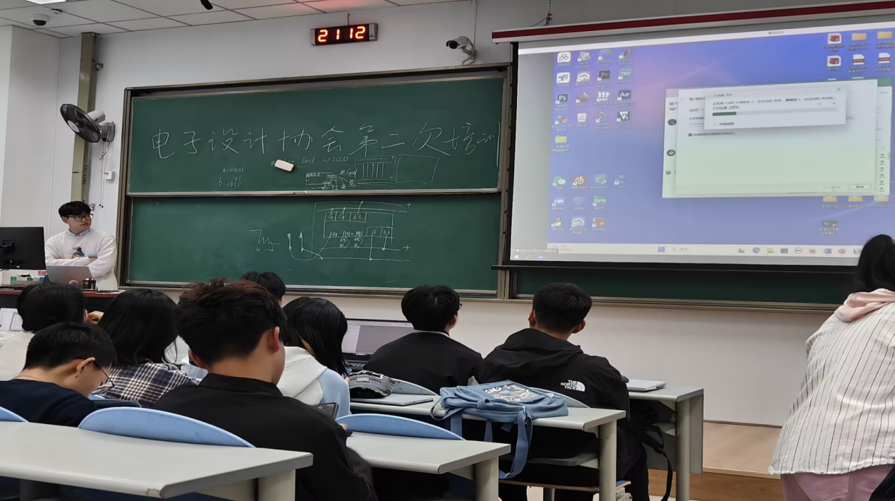 电子设计发展中心(以下简称电协)在东廊203举办了电协第二次培训,由电协副部长胡玥杉担任主讲。她首先强调了培训的重要性,为同学们指明了学习的方向。接着,她主要针对Keil5编译器的应用和STM32单片机的学习进行了讲解,并提供了相关资料供同学们参考。在介绍了C语言的基础知识后,她重点讲解了STM32的引脚配置和GPIO的基本结构和工作方式,以及向同学们展示了如何利用STM32引脚结合器材实现跑马灯效果。最后,由双创中心主席杨瑞熹为今晚培训内容做简要总结,点明主要内容。
