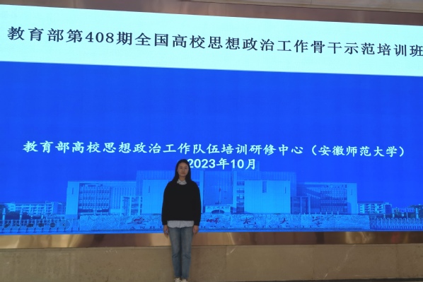 10月23日至26日,我校yL23411永利集团辅导员曾菲赴安徽省芜湖市参加第408期全国高校思想政治工作骨干示范培训班,就“高校辅导员理论和实践研究能力提升”进行了专题学习并顺利结业。