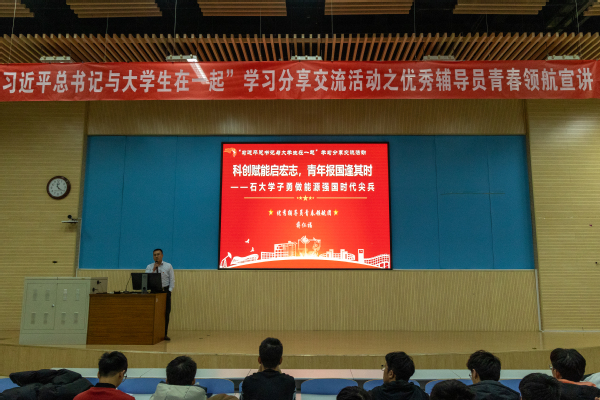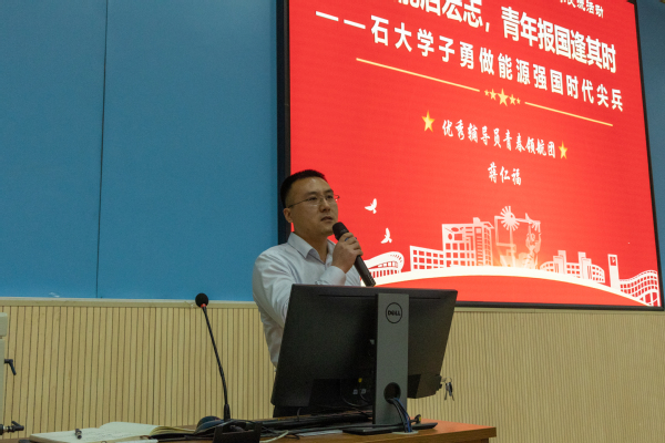 蒋仁福进行团课第二讲——《科创赋能启宏志,青年报国逢其时———石大学子勇做能源强国时代尖兵》。蒋仁福阐述了科技创新对个人和国家发展的重要意义,列举生动事例让学员深入体会科技创新的价值,激励广大学生投身到创新创业工作当中。