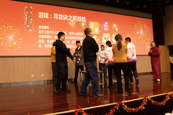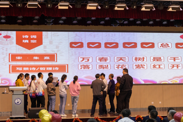 经过学院工会的精心筹备和院属各单位的精心准备,各个节目精彩纷呈。电工电子教学中心全体教师在系主任周兰娟的带领下表演的开场舞蹈《你要跳舞么?》活力四射,整齐划一又动感十足的舞姿引起了全场热烈的喝彩;自动化系老师们在系主任张晓东的带领下精心编撰并演出了小品《昨天 今天 明天》,讲述了教师孔小智从青年、中年直至退休前在教育教学工作中的成长与苦乐,演员们精彩的表现引起了满堂的欢笑和老师们强烈的共鸣;测控技术与仪器系五位青年教师金浩、王伟亮、陈孝喆、陆洋和高睦志带来了小合唱《光阴的故事》,动听的歌声回荡在整个会场;永利集团中心精心筹备了三句半《再夸咱学院》,领导班子陈璨、郝宪锋、刘希辰、马士腾全员上阵,充分的展现出了学院今年喜获的各项成绩,四位演员专业的行头、精彩风趣的表演更是将引起场上一阵高过一阵的热烈掌声,将联欢会的气氛带上了高潮;精彩纷呈的节目中穿插了多个游戏环节,其中既有趣味活动《欢乐诗词》弘扬中华传统文化,又有《跃动2023》、《一掷千金》、《寻龙诀之抓娃娃》等比赛反应和配合的竞技活动,院友嘉宾们也组队与老师们同场较量,场上队员各显神通,场下观众掌声不断。院友嘉宾们还登台发言,并抽取了多位幸运奖获得者,现场一片欢乐祥和。最后是院机关表演的舞蹈串烧《你喜欢的,应有尽有》,学院办公室和辅导员老师们轮番登场演绎《最炫民族风》、《科目三》、《心墙》等流行曲目,最后共同登台演绎《美丽中国》,展现了对学校和学院前景的美好祝愿,为联欢会画上了圆满的句号。