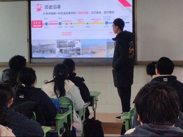 在活动过程中,宣讲队介绍了石大的光辉历史,从学科实力、专业设置、就业率与就业质量等各个方面详细阐述了石大的优势,并分享了石大丰富多彩的大学生活,最后分析了石大今年的招生计划,鼓励同学们报考石大,为实现自己的人生理想而不断奋斗。此外,宣讲队成员以“过来人”的角度向同学们讲述自己的学习方法,并分享自己高中阶段的心态变化,鼓励大家以积极乐观的态度面对高考。在最后的互动环节中,同学们积极主动的提出了自己的感想与疑惑,宣讲队成员一一进行了详细的解答。
