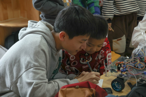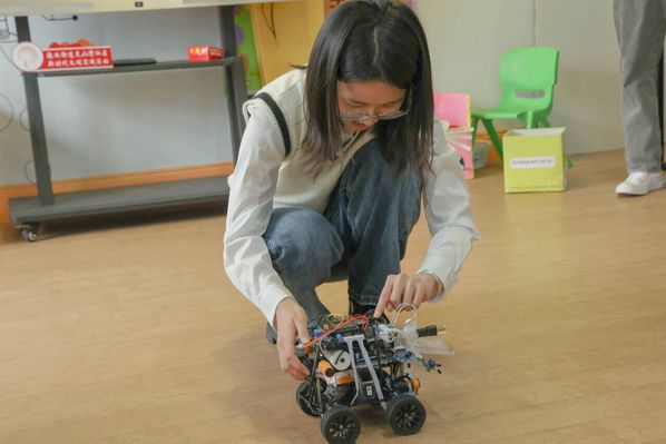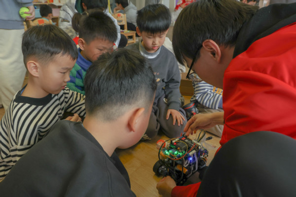 最后,主讲人杨璇向小朋友们介绍了由控制学院学生制作的多个智能小车,并让小朋友们近距离观察体验,在小朋友心中埋下了科技创新的种子,多个小朋友表示“我长大以后也要自己制作一个这样的智能小车”。
