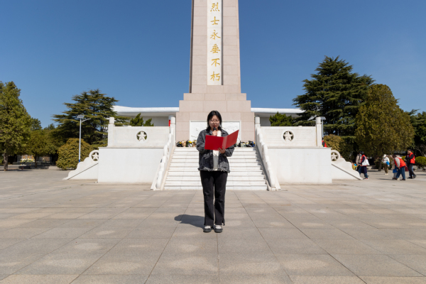 31号上午,全体成员到达烈士陵园,开始进行参观学习。首先,全体成员在革命烈士纪念碑前排成队列,集体面向纪念碑默哀,缅怀那些为新中国成立以及社会主义现代化建设而献出宝贵生命的英雄们。随后,大家依次上前,将鲜花敬献在烈士纪念碑前,寄托着对烈士们的哀思和敬仰。接下来,控制学院20级代表许硕同学在纪念碑前发表演讲,表达了对革命烈士们的崇高敬意,号召大家要铭记历史、珍惜当下,以实际行动继承和发扬先烈们的革命精神。然后,全体成员在领誓人的带领下重温了入党誓词,彰显了党员们对党的忠诚和对共产主义事业的执着追求。