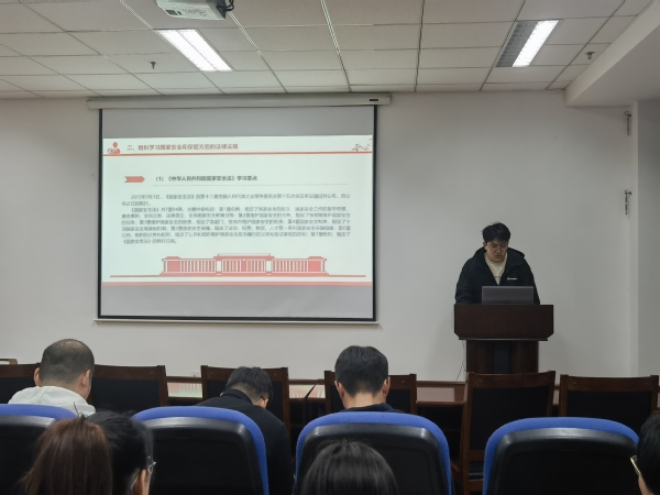 本次会议分为两个部分,畅鑫毅同志带领大家学习第一部分:组织学习习近平总书记关于总体国家安全观的重要论述。我们了解到,今年是总体国家安全观提出10周年,今年4月15日是第9个全民国家安全教育日。畅鑫毅同志指出,在《习近平著作选读》第一卷中的《坚持总体国家安全观》中,有这样一段话:增强忧患意识,做到居安思危,是我们治党治国必须始终坚持的一个重大原则。我们党要巩固执政地位,要团结带领人民坚持和发展中国特色社会主义,保证国家安全是头等大事。我们深刻认识到维护国家安全,是我们每一位公民的义务和责任,具有重大意义。