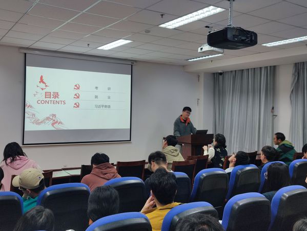 本次会议主要包括三部分内容,考研、就业以及青年寄语。首先,张继彦同志向我们详细分享了考研准备心得,从六个方面为大家剖析了考研的奥秘,从专业课复习策略到公共课备考经验再到考试技巧与注意事项、时间管理与规划、心态调整与压力以及应对复试准备与建议,他的细致入微让大家受益匪浅。接着,张继彦同志又向大家介绍了就业方面的知识,包括如何查询企业招聘信息和面试经验,让大家对本专业的就业去向以及就业情况有了更加充分地理解。最后,他指出当代青年要在实现民族复兴的赛道上奋勇争先,并鼓励学弟学妹们坚定信心、认真备考,恒心加努力就一定能实现目标。