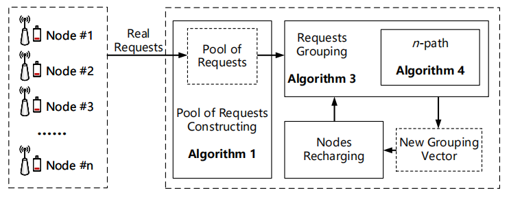 图 3. 基于请求分组机制的多移动充电器协同调度示意图