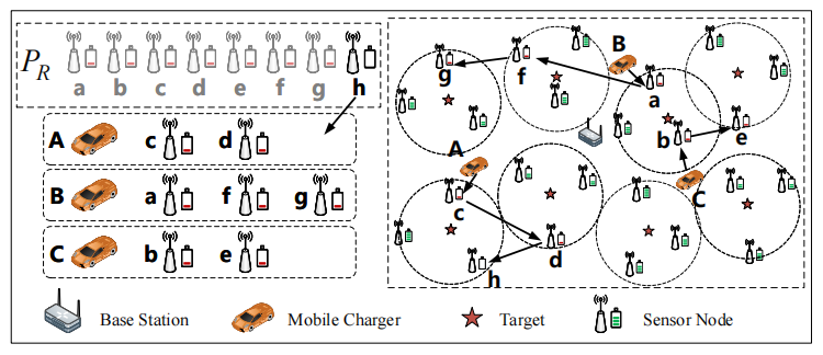 进展二:针对无线可充电传感器网络中多移动充电器按需充电调度的最大化目标覆盖率问题,提出了基于请求匹配机制和基于请求分组机制的多移动充电器协同调度方法。相关研究论文《Towards Maximizing Coverage of Targets for WRSNs by Multiple Chargers Scheduling》被CCF A类、计算机网络领域顶级期刊IEEE Transactions on Mobile Computing (TMC)录用(薛焕昇,陈鸿龙,倪志琛,刘小龙,夏锋)。该工作得到山东省优青项目、山东省泰山学者青年专家项目、国家自然科学基金面上项目等项目的资助。我院博士研究生薛焕昇为第一作者,陈鸿龙教授为通讯作者,yl23411集团为第一署名单位。