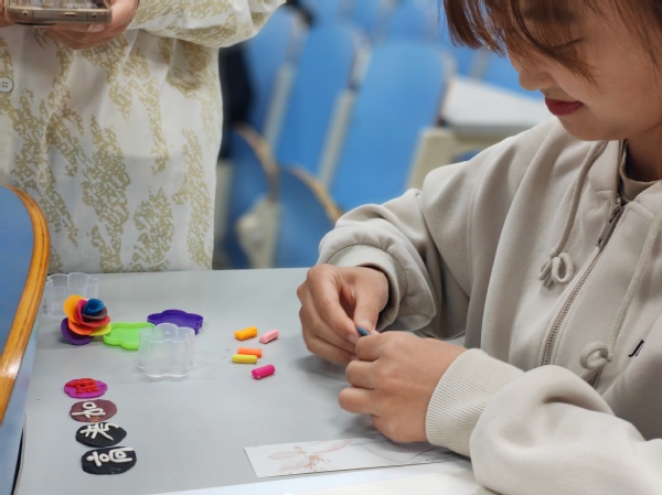 图3 同学进行“创意橡皮泥”环节的手工制作 朱天宝摄