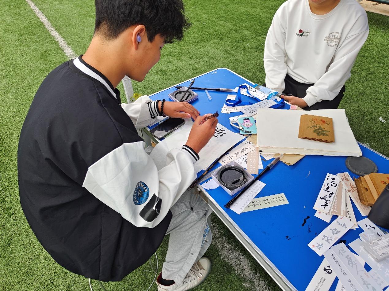 落笔惊风起,摇空见露浓。同学们用毛笔在宣纸或书签上书写自己喜欢的名言或诗句,或是创作一幅毛笔画,或是五子棋对弈,对弈三局。意随笔走,心随墨舞,在书法的熏陶下,去尽情地表达自己,去感受世界,大家在愉快的氛围中增进了自我认知。