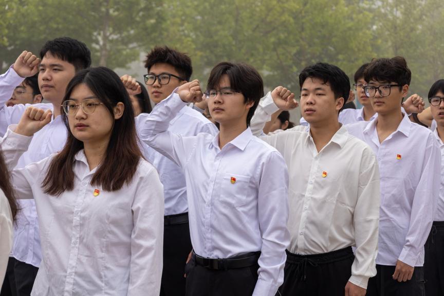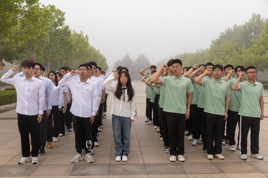 随后,护旗手带团旗上前,全体党员在自动化第三党支部书记闫学哲的带领下,重温了入团誓词。紧接着,预备党员们进行了庄严地入党宣誓,这一刻,他们正式成为党组织的一员,肩负起了更加神圣的使命和责任。誓言铿锵有力,回荡在广场上空,激励着每一位青年党员为实现共产主义事业不懈奋斗。