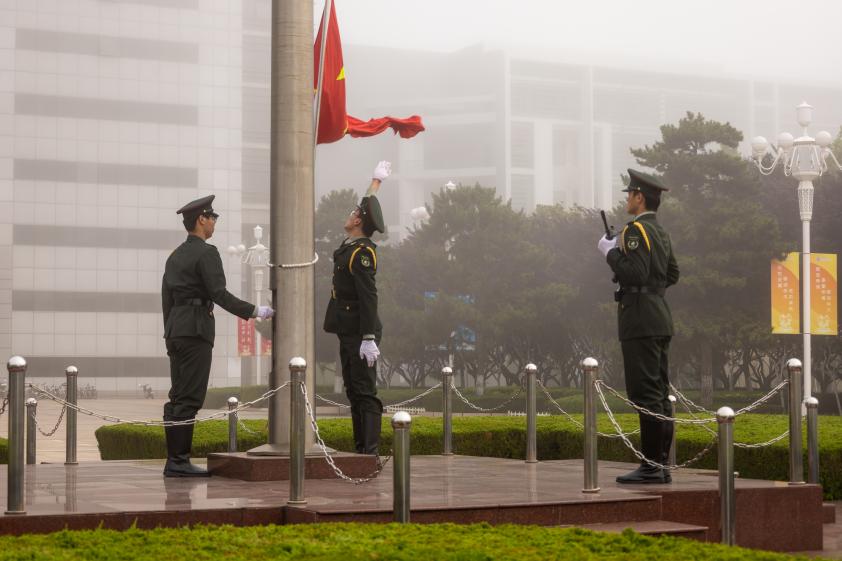 值此中华人民共和国成立75周年之际,为进一步激发广大师生的爱党爱国爱校热情,深入学习习近平新时代中国特色社会主义思想,贯彻党的二十大精神,控制科学与工程学院于6月17日在子元广场隆重举行“赓续红色基因,献礼祖国华诞”主题升旗仪式暨毕业生党团员教育活动。学院毕业生党员及2023年下半年发展预备党员参加本次活动。