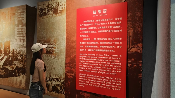 从古代的雕塑和瓷器,再到清代青岛旧址照片,《青岛史话》讲述了青岛城市从清朝末年经历德、日强占,北洋军阀和国民党第一次统治,十四年抗战,迎接解放的历史。讴歌了青岛人民抵御外辱、前仆后继、争取解放的革命事迹。通过参观《青岛史话》,实践队成员的爱国主义精神被再一次激发。