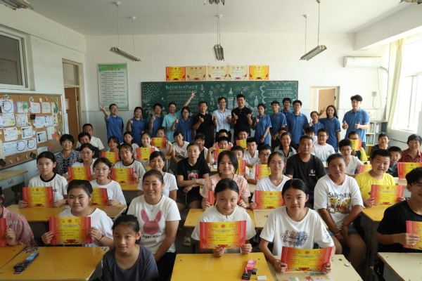 实践队队员与山村学生合照
