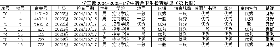 控制学院优良舍风建设小组检查结果(第七周):