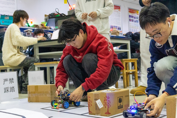 控制专题参赛队员在测试小车 蔡佳怡摄