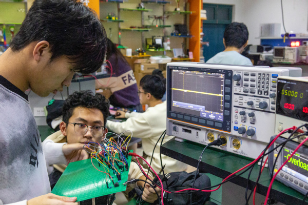 本次电子设计竞赛第二期比赛包含三个专题,分别是模数类,控制类和信号类。为了为参赛队伍提供更好的备赛环境,控制学院双创中心开放了基础B107实验室供参赛队员进行制作和调试工作,同学们有序预约并遵守实验室相关规则,大家共同营造良好的实验室环境。