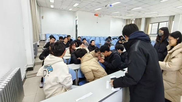 在介绍完宪法相关内容后,自动化2303班团支书蔡仪航借助自制小程序,以知识竞赛形式考察团员的宪法学习情况,并采用积分制与淘汰制,对每位团员的学习情况进行了排名。