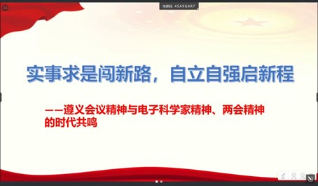 电子科技大学微波工程第八党支部王小璐同学聚焦遵义会议精神和电子科学家精神,作“传承红色基因、担当时代使命”主题宣讲。遵义会议通过“摆事实、讲道理”纠正错误,与科学家“求实”精神相通;强调独立自主,与科技自立自强相呼应;民主讨论与集体决策,与两会精神民主协商、集中力量办大事相呼应。新时代青年应弘扬遵义会议与科学家精神,为实现科技自立自强和民族复兴贡献力量。