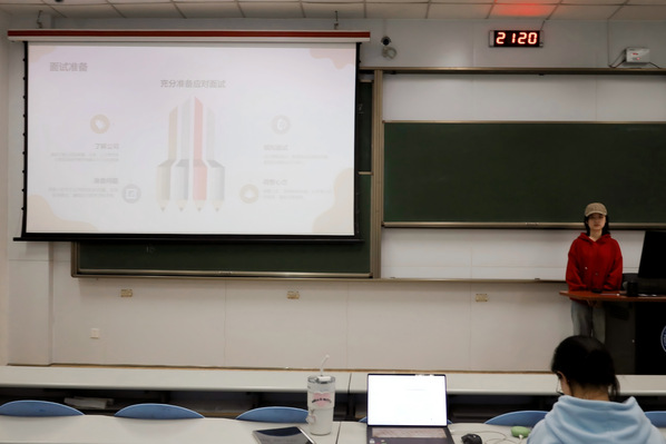 宋妍霏学姐、王柯丁学长和盛世学长,在就业经验分享中,着重介绍了求职过程中的关键环节。他们指出,撰写简历时,要突出自身优势与岗位匹配度,用具体事例和数据增强说服力;面试前要充分了解企业和岗位,提前准备常见问题的回答,面试过程中保持自信、积极的态度,展现良好的沟通能力和团队协作精神。