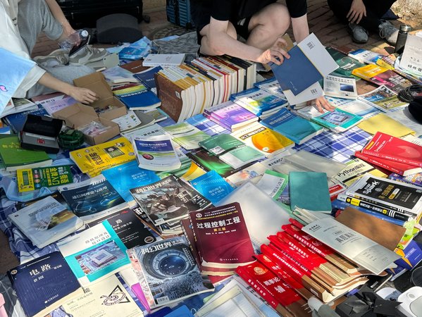 活动现场,控制学院的摊位前热闹非凡。毕业生们带着承载青春回忆的旧物而来,专业教材、考研资料、创意手作等摆满摊位。这些旧物,或是陪伴他们熬夜备考的“战友”,或是记录校园生活的“见证者”。学弟学妹们穿梭其间,挑选心仪物品,同时聆听毕业生分享的校园故事与学习经验。一本被翻旧的专业书,在流转中继续传递知识;一件闲置的小摆件,在新主人手中重焕生机 。