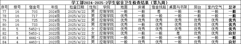 控制学院优良舍风建设小组检查结果(第九周):