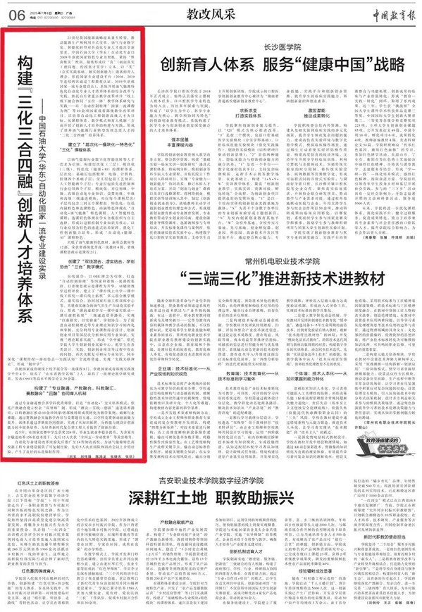 【中国教育报】构建“三化三合四融”创新人才培养体系
