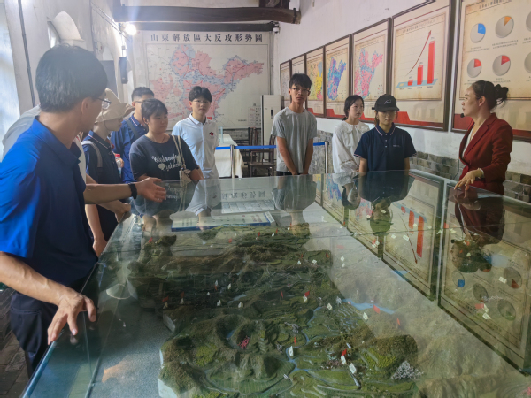实践队依次参观了省政府成立纪念馆、八路军115师司令部旧址及革命历史展陈馆等主要展区。在讲解员的专业引导下,队员们认真观看了馆内陈列的《大众日报》创刊号、山东分局关于建立抗日民主政权的决议文件、八路军作战地图等珍贵革命文物,细致研读了记载山东抗日根据地政权建设、经济建设、文化教育发展的历史文献资料,并通过观看多媒体沙盘、历史影像资料等方式,全面了解了山东抗日根据地从创建、巩固到发展壮大的全过程。在八路军115师司令部旧址内,队员们通过实地察看作战指挥室、领导人旧居等历史场景,结合实物展陈和图文解说,深入了解了八路军115师在罗荣桓等将领指挥下开展军事斗争、参与根据地建设的革命事迹,对山东抗日根据地的历史地位和革命价值有了更为系统的认识。