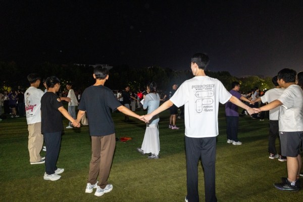 9月9日晚,我院2025级新生在操场上开展了一场别开生面的同心启航,青春筑梦团辅活动,旨在促进新生相互了解,增强集体凝聚力。