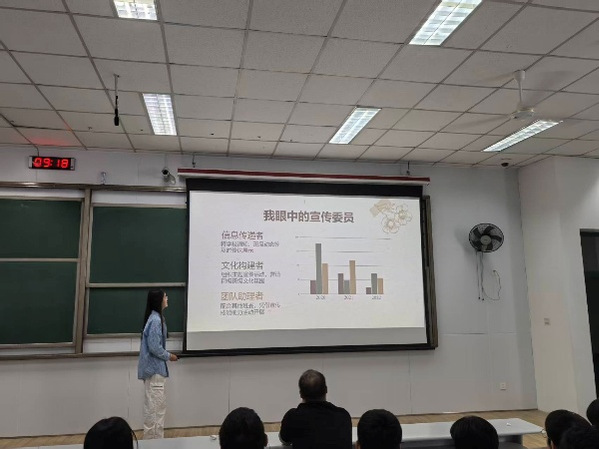 同学们积极参与班级干部竞选,期待为班级贡献自己的力量。团支部书记竞选者李楠向大家阐述了自己对于岗位的认知和未来的工作规划;班长竞选者李昊洋明确表态,若当选将坚决拒绝形式主义,以“服务同学、解决实际问题”为首要目标。此外学习委员竞选者王俊恺、肖懿,组织委员竞选者李嘉隆、周美希,宣传委员竞选者云奕涵、王迎笑,心理委员竞选者龚琳钧,体育委员竞选者傅天乐,生活委员竞选者郑慧馨也依次发言,结合目标岗位职责展示个人能力与工作设想,赢得现场同学的阵阵掌声。