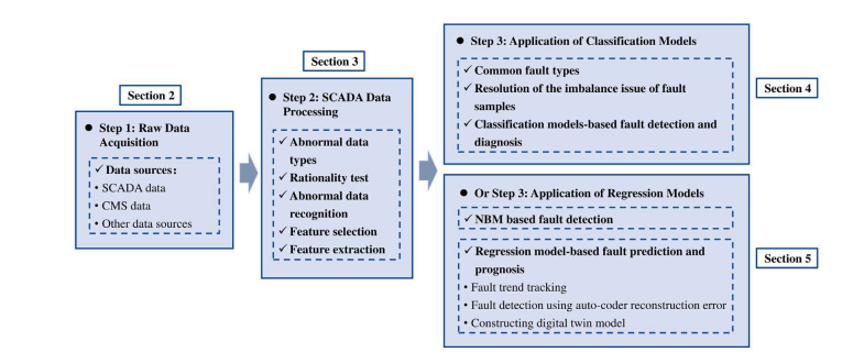 近年来,监控和数据采集(SCADA)数据在风力涡轮机状态监测领域获得了越来越多的研究关注,人工智能(AI)技术已被广泛应用于解决状态监测挑战,而人工神经网络(ANN)被认为是现代AI的基础组件,已被证明是特别有效的工具,风力涡轮机状态监测的重点是分析涡轮机的运行参数,以实现早期故障检测、精确诊断和准确诊断,从而降低灾难性故障的风险,增强系统可靠性,并提高风电场的运行效率。由于缺失值和异常数据的存在,在将数据送入ANN模型之前,数据清洗等预处理步骤至关重要。此外,ANN体系结构的选择通常取决于状态监测任务的具体要求。