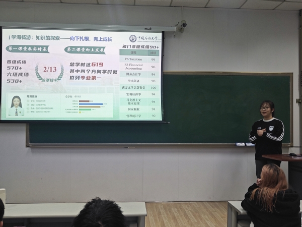 会计学2301班陈楚佳妮同学则带来了“在多元实践中解锁青春可能”的精彩分享。她手握2项国家级、2项省市级、6项校级奖项,荣获第二十三届“思美之星”称号。在学业发展上,陈楚佳妮提出“打破信息差”的理念,建议大家提前调研学科资源、赛事动态,在充分了解的基础上精准发力。科创方面她参与的大创项目成果丰硕;志愿服务与社会实践中,她坚持红色传承,带领团队成为校标杆实践队;学生工作里,她身兼班级团支书、经管学院学生会主席团成员等多职,同时还活跃在校史宣讲、主持比赛、辩论队等校园文化阵地。