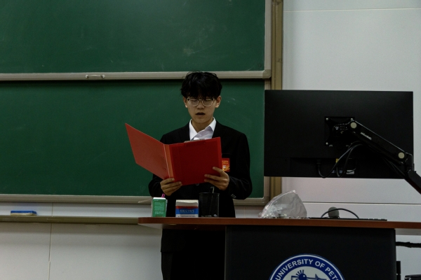 随后,学院团委书记蒋仁福受学院党委委托发表致辞。他首先对院学生会、研究生会的各项工作和成绩给予了充分肯定,并对院学生会和研究生会表示感谢。接着,他对全院青年学子提出三点要求:一是坚定理想信念,传承石大“家国同心、艰苦奋斗”的红色基因,不忘初心;二是勇于创新创造,依托学院控制学科优势,在物联网、人工智能等领域深耕钻研,追求卓越;三是矢志艰苦奋斗,主动到项目攻关前沿锤炼本领,以实干诠释青春担当。