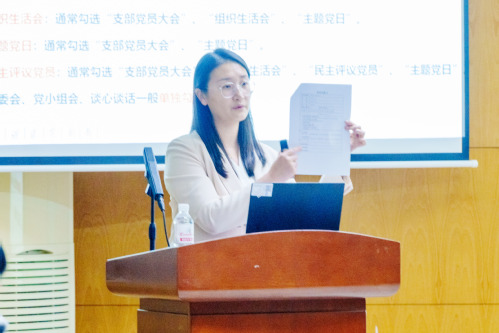 曾菲围绕党支部基本情况、党员名册、入党积极分子名册、年度工作计划、支部活动记录与年度总结几大模块,逐项拆解填写规范,现场示范“易错点”修正。她特别提醒:记录务必真实、及时、规范、完整,杜绝“走过场”式记录、文体混淆、信息闭合等常见问题,确保支部工作“留下痕迹、形成闭环、经得起查”。整场分享干货满满,这种“小而精”的主题工作坊,为参训人员提供了系统、实用的业务指导,打造基层党务“交流圈+提升站”。