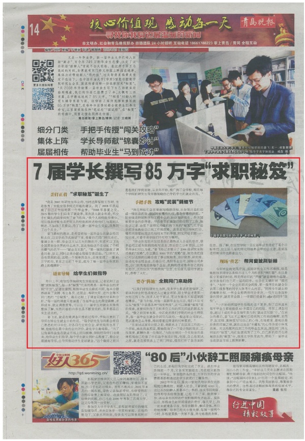 图19 学风建设持续推进,学霸小课堂等朋辈帮扶活动多种多样 图20 学院就业吉尼斯活动被青岛日报报道