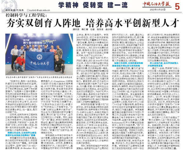 夯实“一主线、两保障”双创育人体系,注重内涵建设,持续推动创新型人才培养,有力支撑学科专业发展。五年来,学生获省级及以上双创竞赛奖励595项(其中国家级227项)。“三大赛”获省级以上奖励64项(国家级18项、金奖2项),RoboMaster机甲大师战队享誉全国,最佳成绩全国第五,3次荣获全国一等奖。学院获评“创新创业优秀组织单位”、“首批教学院部创新创业教育中心试点建设单位”,1名学生获“中国青少年科技创新奖”(全校唯一)。