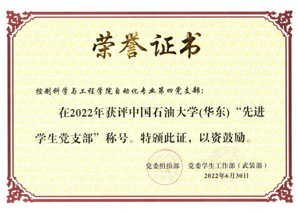 图2 自动化专业第四党支部获评学校“先进学生党支部”荣誉称号 图3 自动化第一党支部获评学校“先进基层党组织”荣誉称号