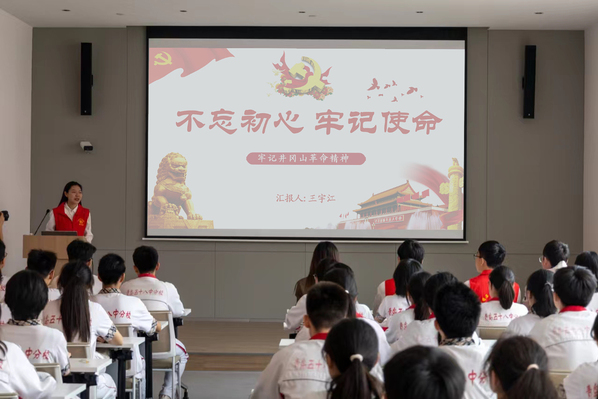 图7 班主任周兰娟老师获评学校“十佳班主任” 图8 青年榜样、朋辈导师王宇江同学开展井冈山精神主题宣讲