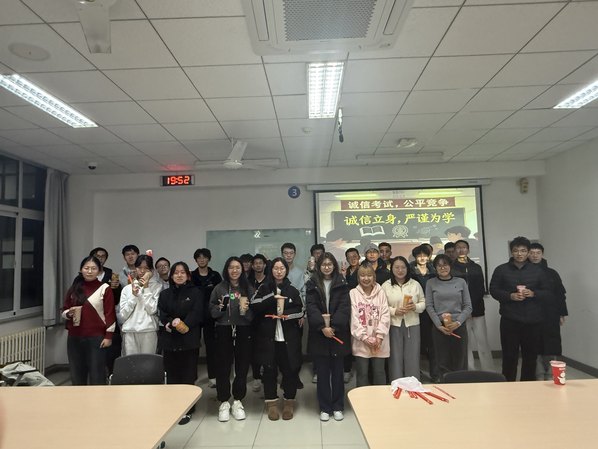 期末备考在即,为筑牢历史认知根基、强化诚信应考意识,智感2502班在综合楼A402教室开展“铭记历史创伤,砥砺复兴之志;诚信立身,严谨为学”主题班会,全班同学共同参与。
