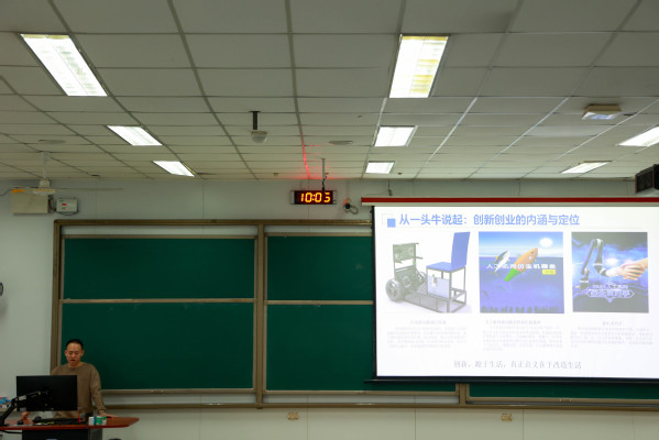 图一 辅导员齐志伟对大学生创新创业主题展开讲解 李楠摄