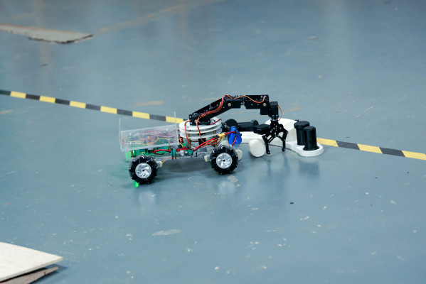 比赛现场氛围热烈,每轮7分钟的较量充满科技感与紧张感。前2分钟的准备阶段,各队操作手迅速完成智能小车的上电调试、工作。正式比赛开始后,操作手们专注操控,通过遥控器精准指令,让小车在赛场内灵活移动、精准识别目标矿石,借助机械臂抓取技术完成矿石拾取与指定区域投放。赛事充分展现了各组选手在机械设计、编程控制、人机协作等方面的综合能力。