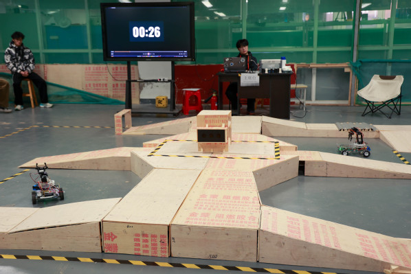 本次大赛由 RPS 战队队长王志明统筹策划,战队充分发挥在智能机器人研发与赛事组织方面的丰富经验,为参赛队伍打造了专业规范的竞技环境。凌俊杰担任主席台裁判,全程严格按照既定规则进行公正评判,确保比赛的公平性与权威性。赛程设计紧凑高效,采用两两 PK 的淘汰赛制,8支晋级队伍先通过首轮较量决出4强,随后四强队伍展开巅峰对决,最终依据矿石抓取运输的得分情况确定冠亚季军归属。