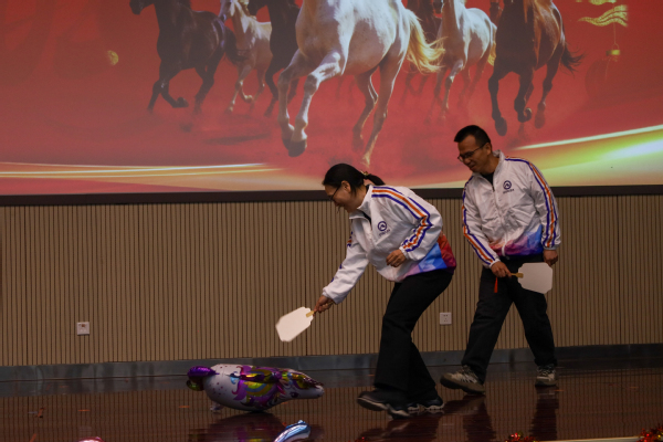 文艺表演间隙,互动游戏环节趣味十足,为联欢会增添了浓厚的欢乐气息。《肢体传声》游戏中,各系部组成的参赛战队默契配合,队员们凭借夸张生动的肢体语言传递关键词,时而妙趣横生、时而“状况百出”,台下观众踊跃互动、掌声笑声此起彼伏,现场俨然成为欢乐的海洋,院友的参与将游戏的气氛推向了高潮。随后的团队竞技游戏《策马奔腾》,各组教师奋勇争先、协同作战,在趣味比拼中充分展现了团结协作、拼搏进取的精神,进一步拉近了彼此距离,凝聚了团队力量。