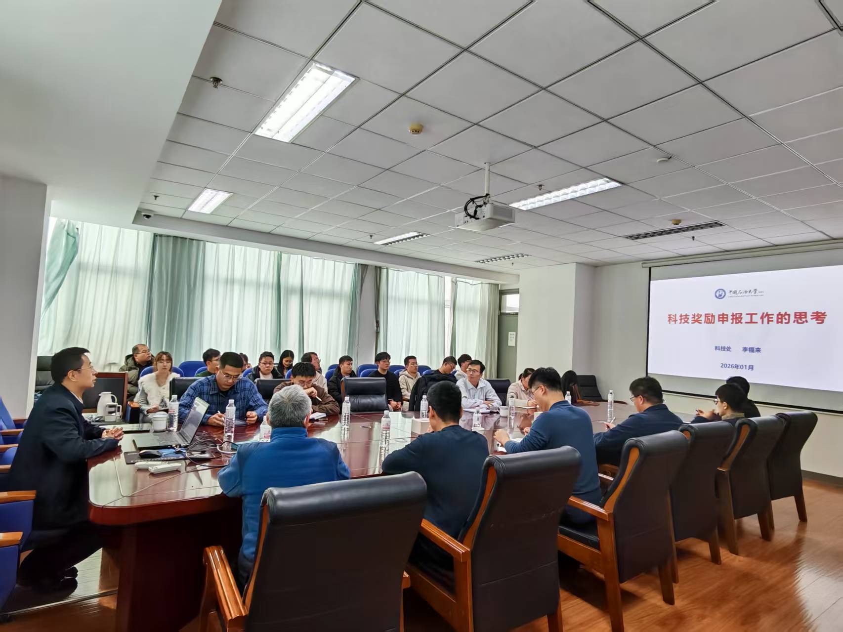 李福来副处长作题为“科技奖励申报工作的思考”的专题报告,围绕“报奖三问”展开系统阐述——从报奖的价值意义、目标奖项的精准定位,到申报材料的规划筹备,逐一解答了“为什么要报奖?目的是什么?”“计划报什么奖?目标是什么?”“报奖准备什么?如何做规划?”三个核心问题,并结合学校近年获奖案例分享了申报技巧与避坑要点。